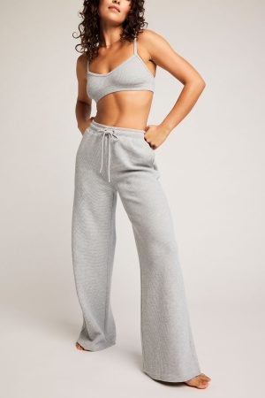 A high-waist. wide-legged track pant in luxuriously cozy waffle knit fabric.