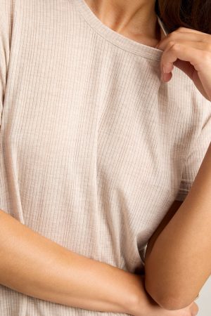 - Drop-needle stitch creates a subtle. vertical stripe effect